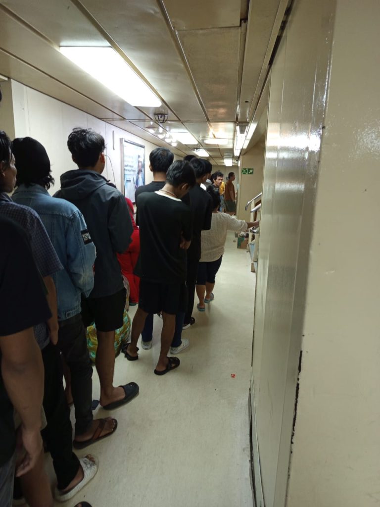 Pantauan di lokasi menunjukkan, para penumpang dengan tertib menunggu giliran di loket pengambilan jatah makan. Jatah makan tersebut merupakan bagian dari layanan selama pelayaran, dengan total tiga kali makan dalam sehari, yakni pagi pukul 07.00 WIB, siang pukul 13.00 WIB, dan sore pukul 17.30 WIB.